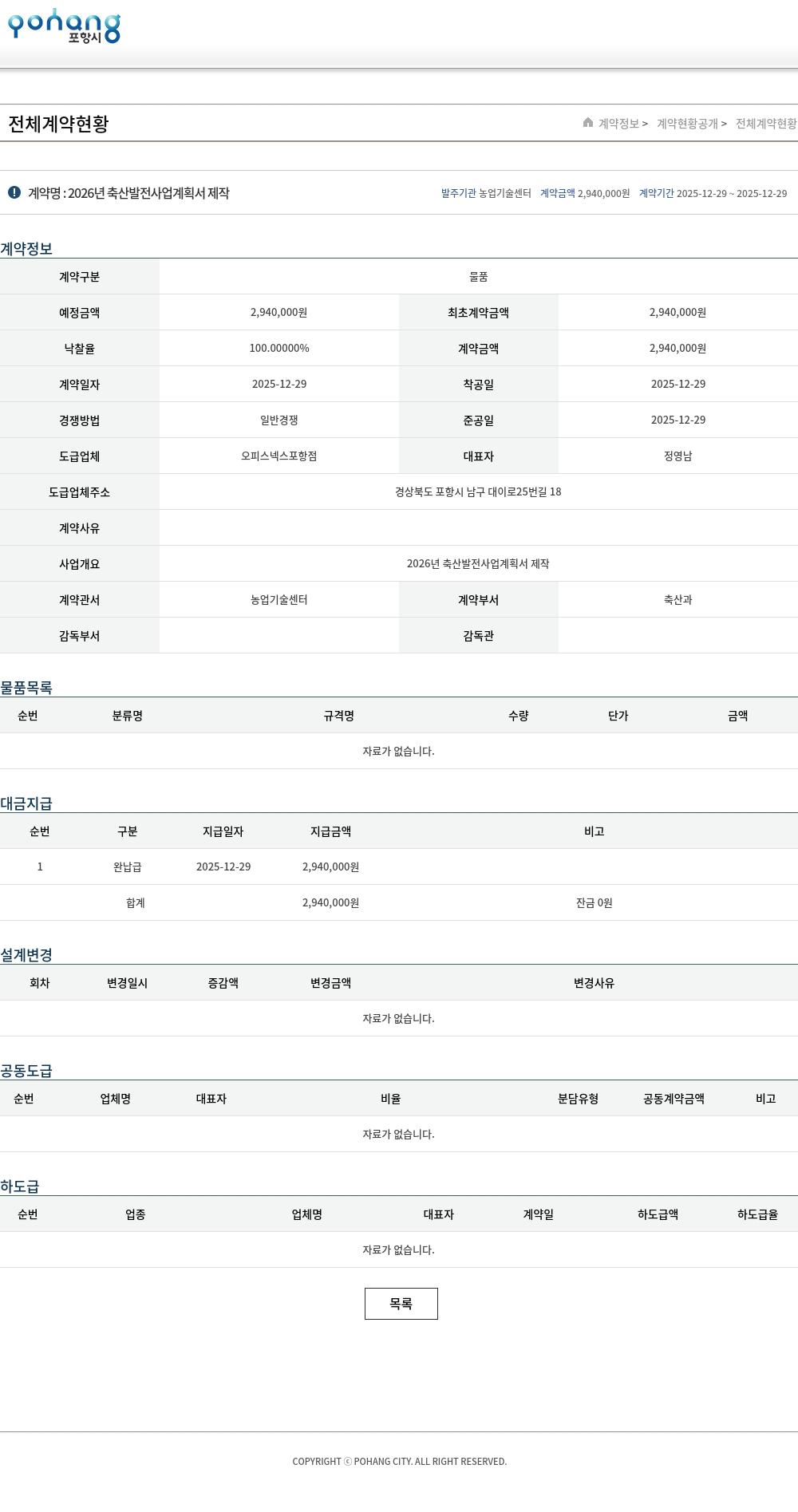 | 예정금액 | 2,940,000원 | 최초계약금액 | 2,940,000원 |