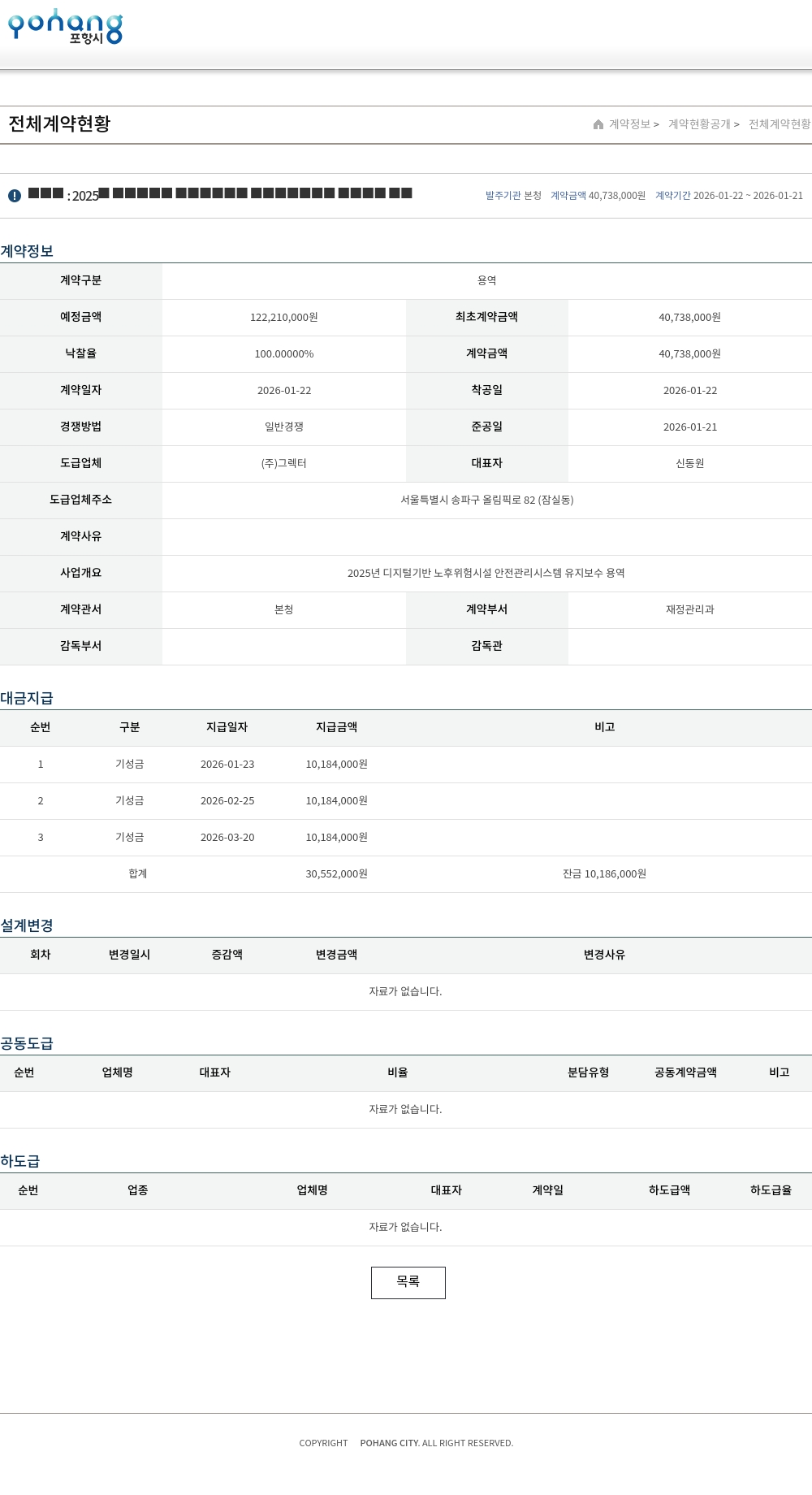 | 예정금액 | 122,210,000원 | 최초계약금액 | 40,738,000원 |