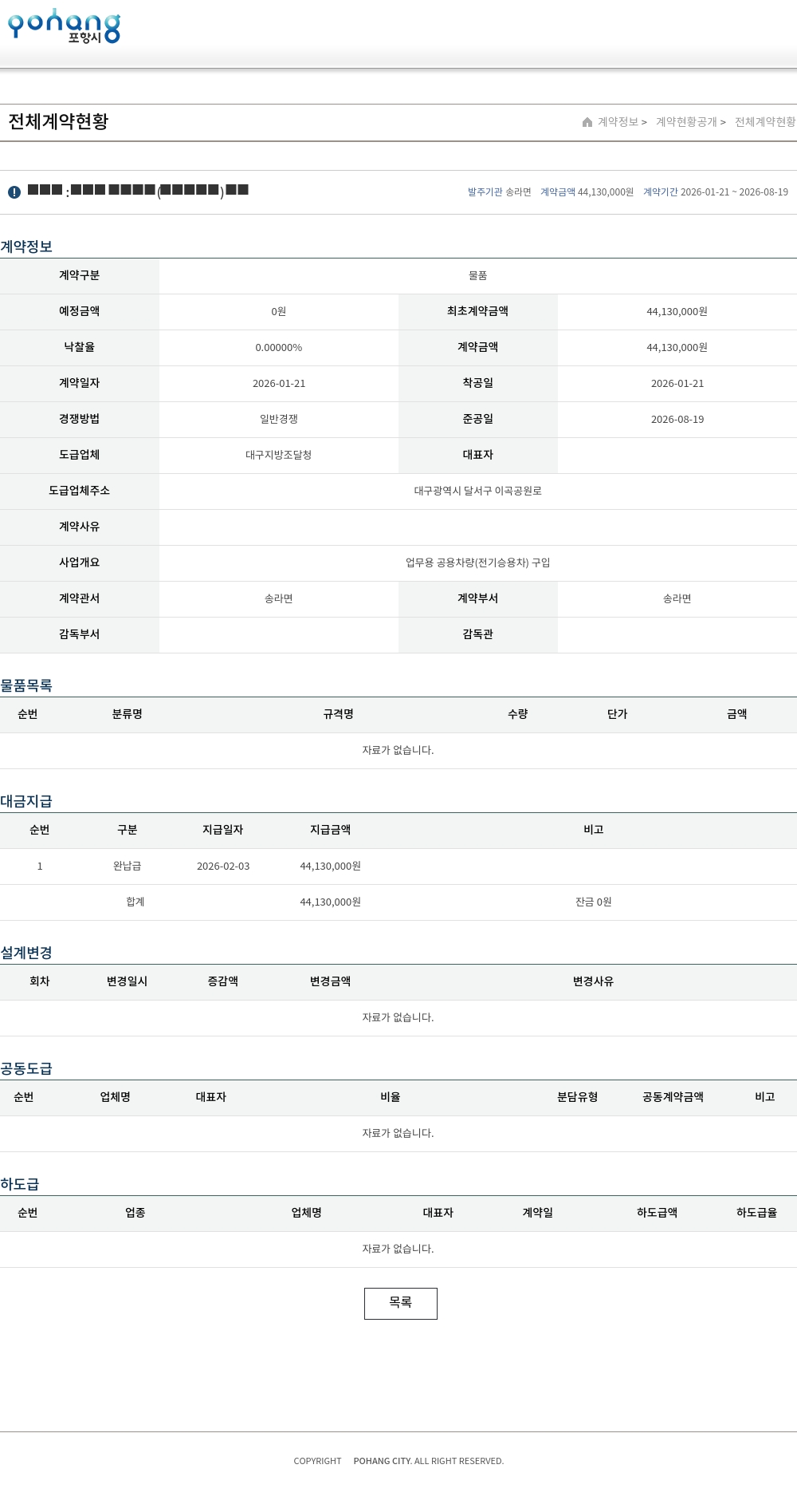 | 예정금액 | 0원 | 최초계약금액 | 44,130,000원 |