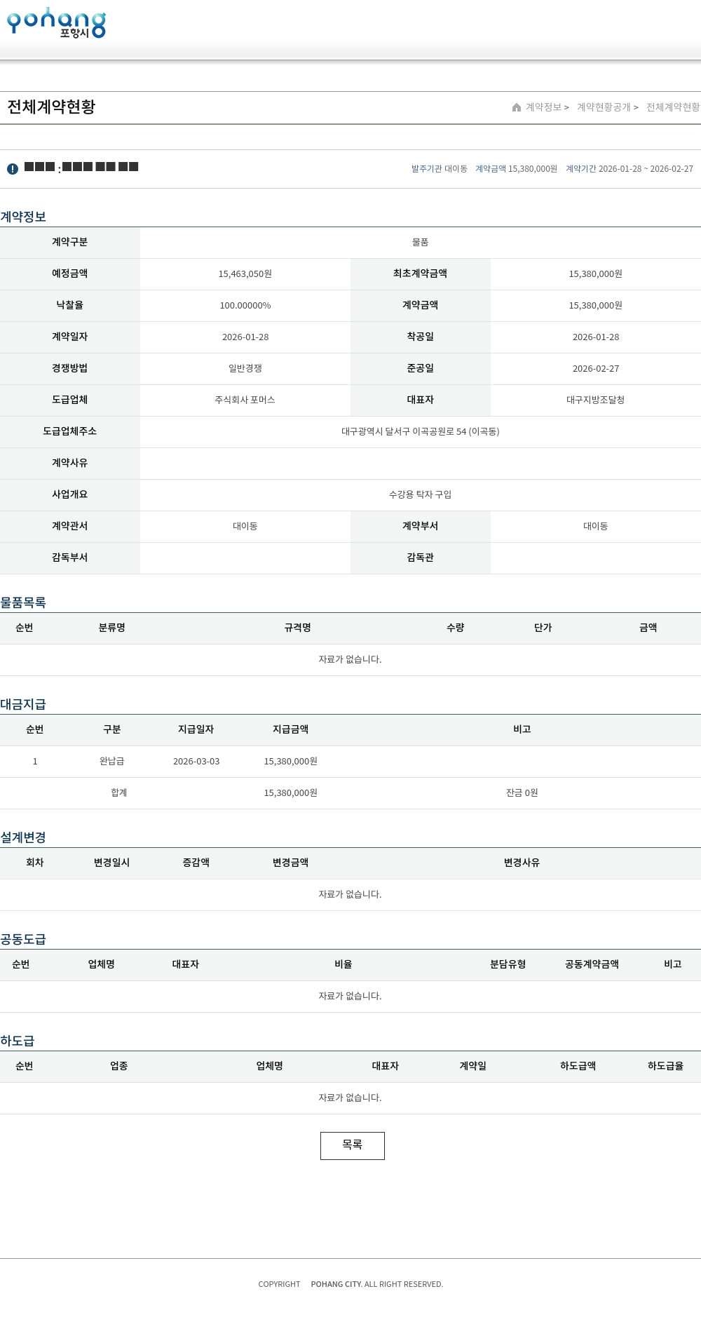 | 예정금액 | 15,463,050원 | 최초계약금액 | 15,380,000원 |