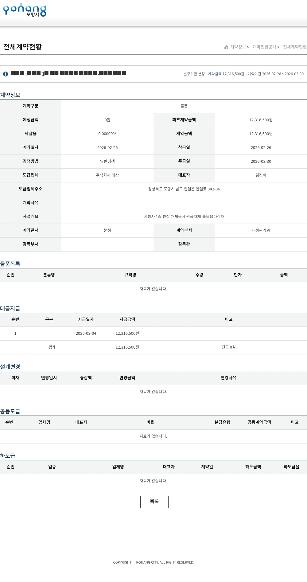 | 예정금액 | 0원 | 최초계약금액 | 12,316,500원 |