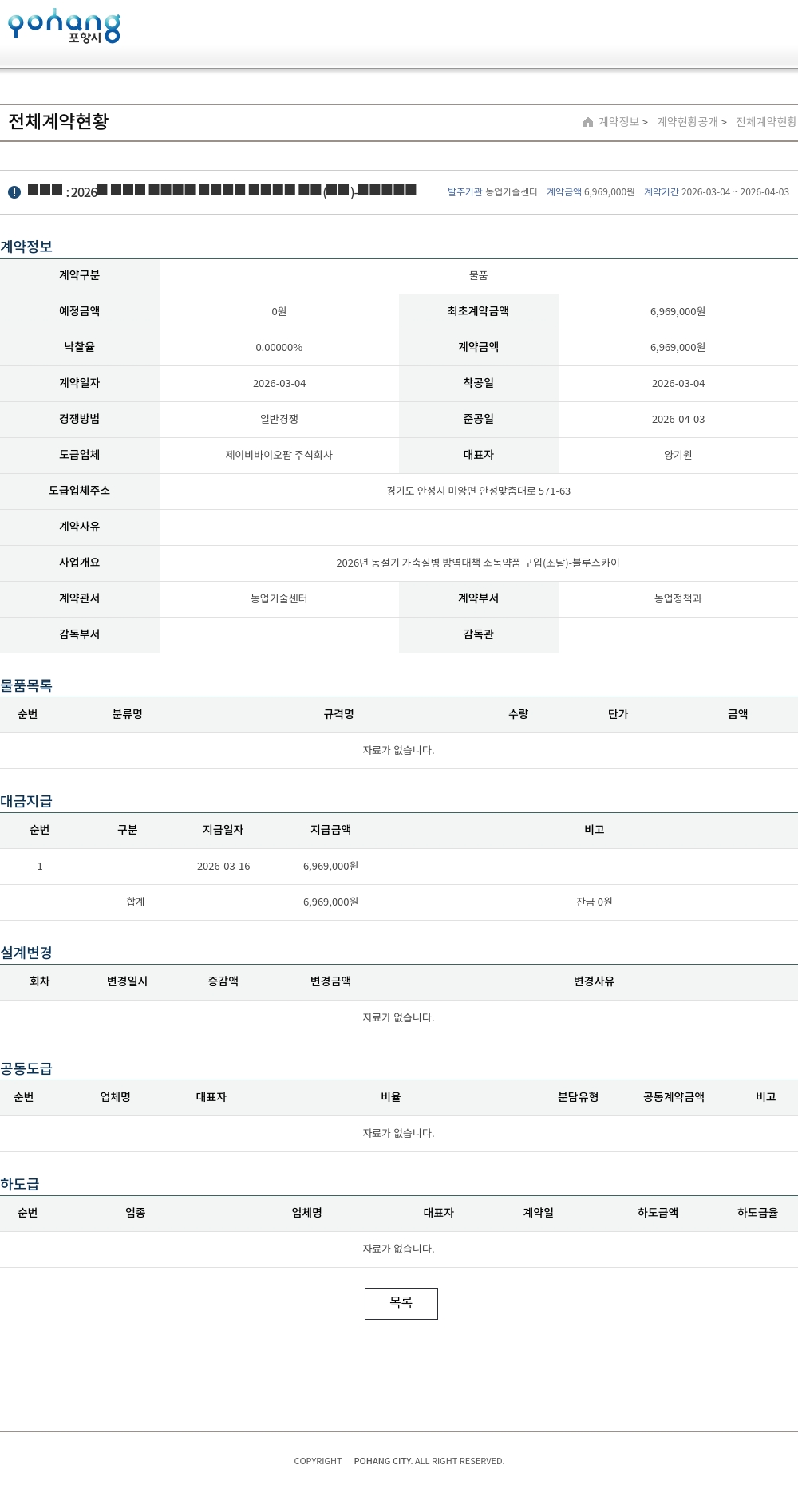 | 예정금액 | 0원 | 최초계약금액 | 6,969,000원 |