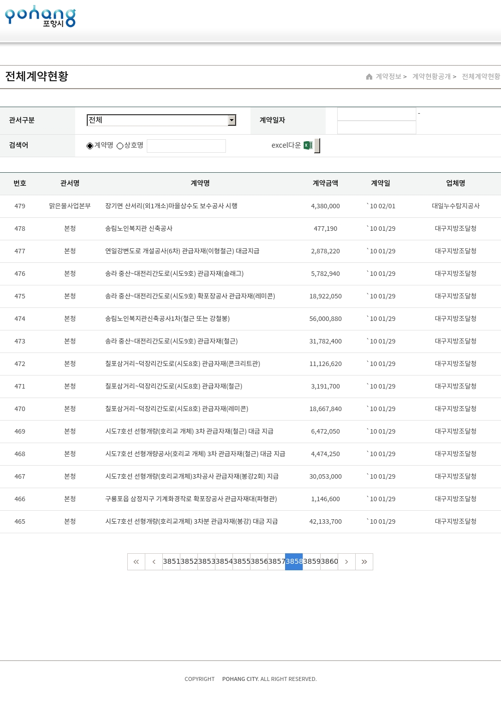 | 117 | 본청 | 포항4단지 도시계획도로(대2-30) 개설공사 6차 관급자재(아스콘) 대금 | 484,120,000 | `09 12/03 | 대구지방조달청 |