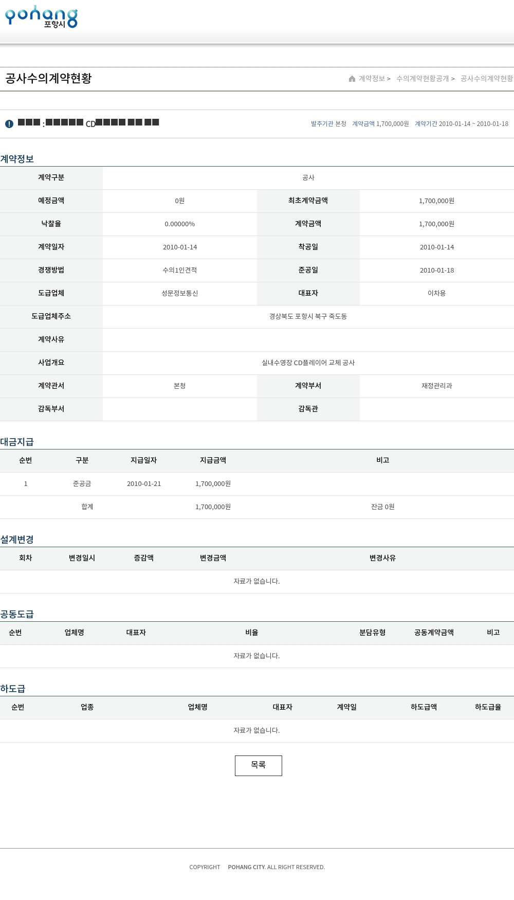 | 예정금액 | 0원 | 최초계약금액 | 1,700,000원 |