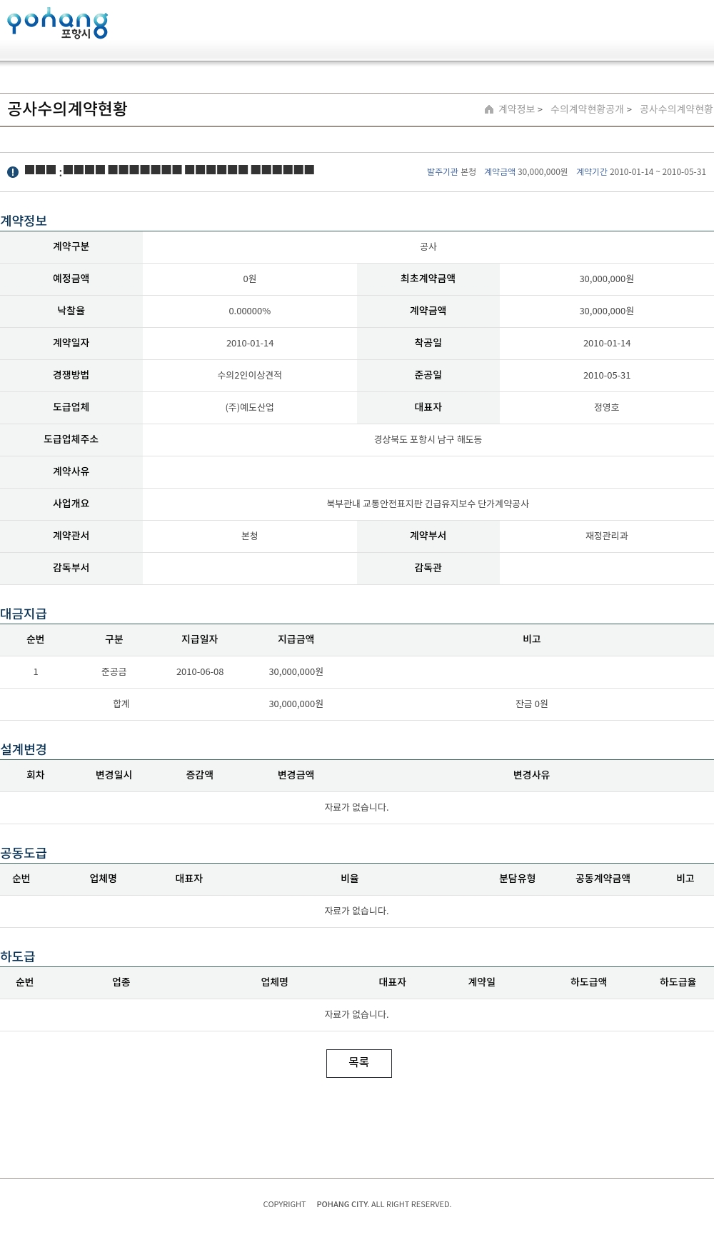| 1 | 준공금 | 2010-06-08 | 30,000,000원 | |