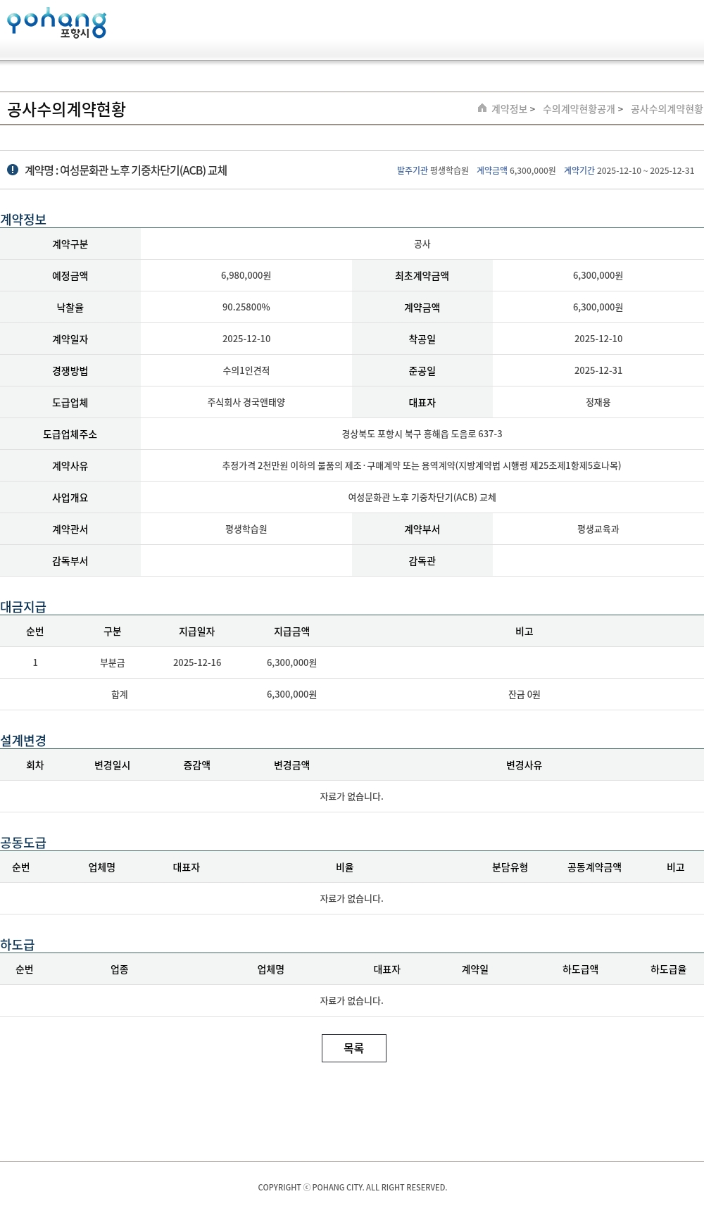 | 예정금액 | 6,980,000원 | 최초계약금액 | 6,300,000원 |