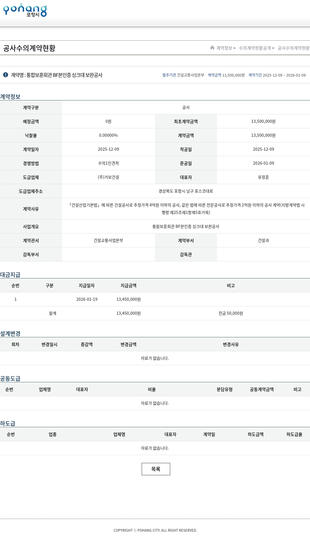 | 경쟁방법 | 수의1인견적 | 준공일 | 2026-01-09 |