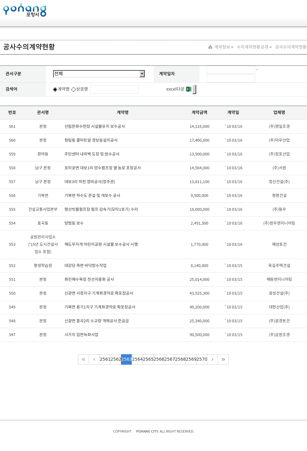 | 286 | 남구 본청 | 장기 방산1리 농로 포장공사 | 10,900,000 | `10 02/17 | (주)상은건설 |