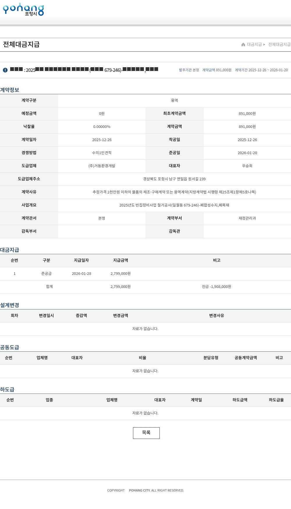 | 1 | 준공금 | 2026-01-28 | 2,799,000원 | |