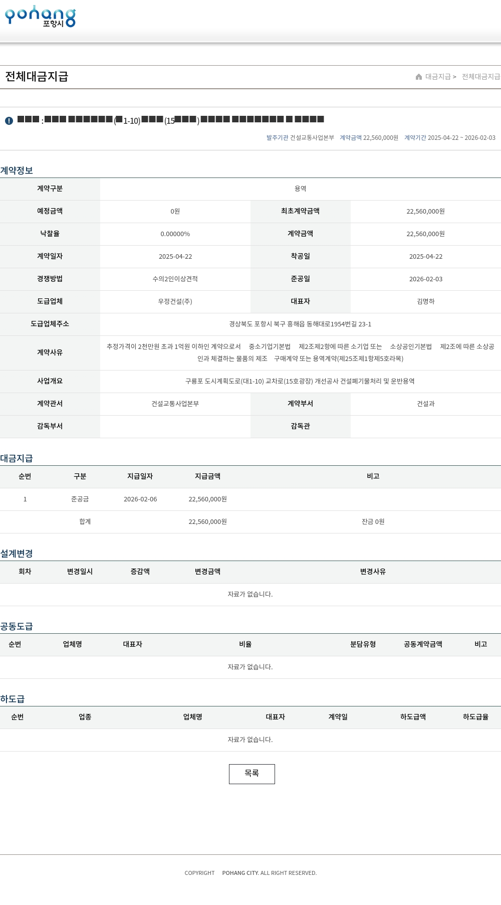 | 1 | 준공금 | 2026-02-06 | 22,560,000원 | |
