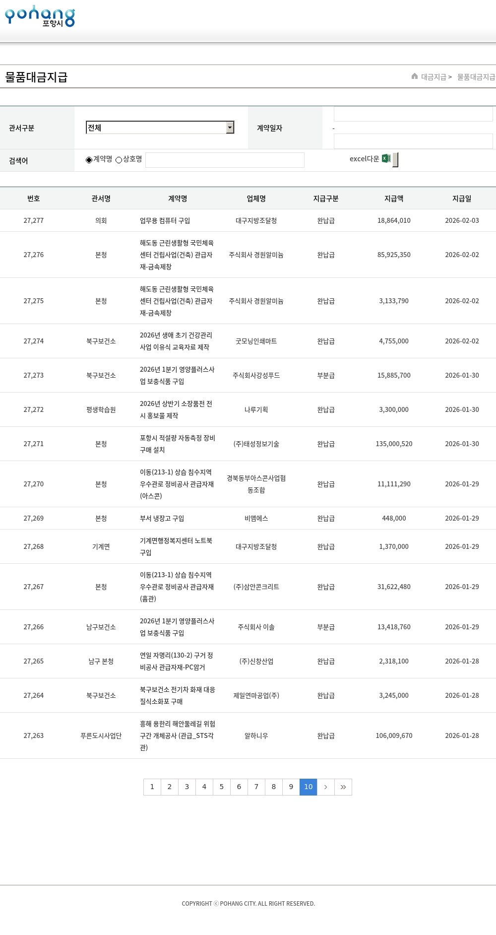 | 27,108 | 본청 | 2025년 포항시 시정소식지 열린포항 제작 | 제일커뮤니티 | 완납급 | 24,822,600 | 2025-12-30 |