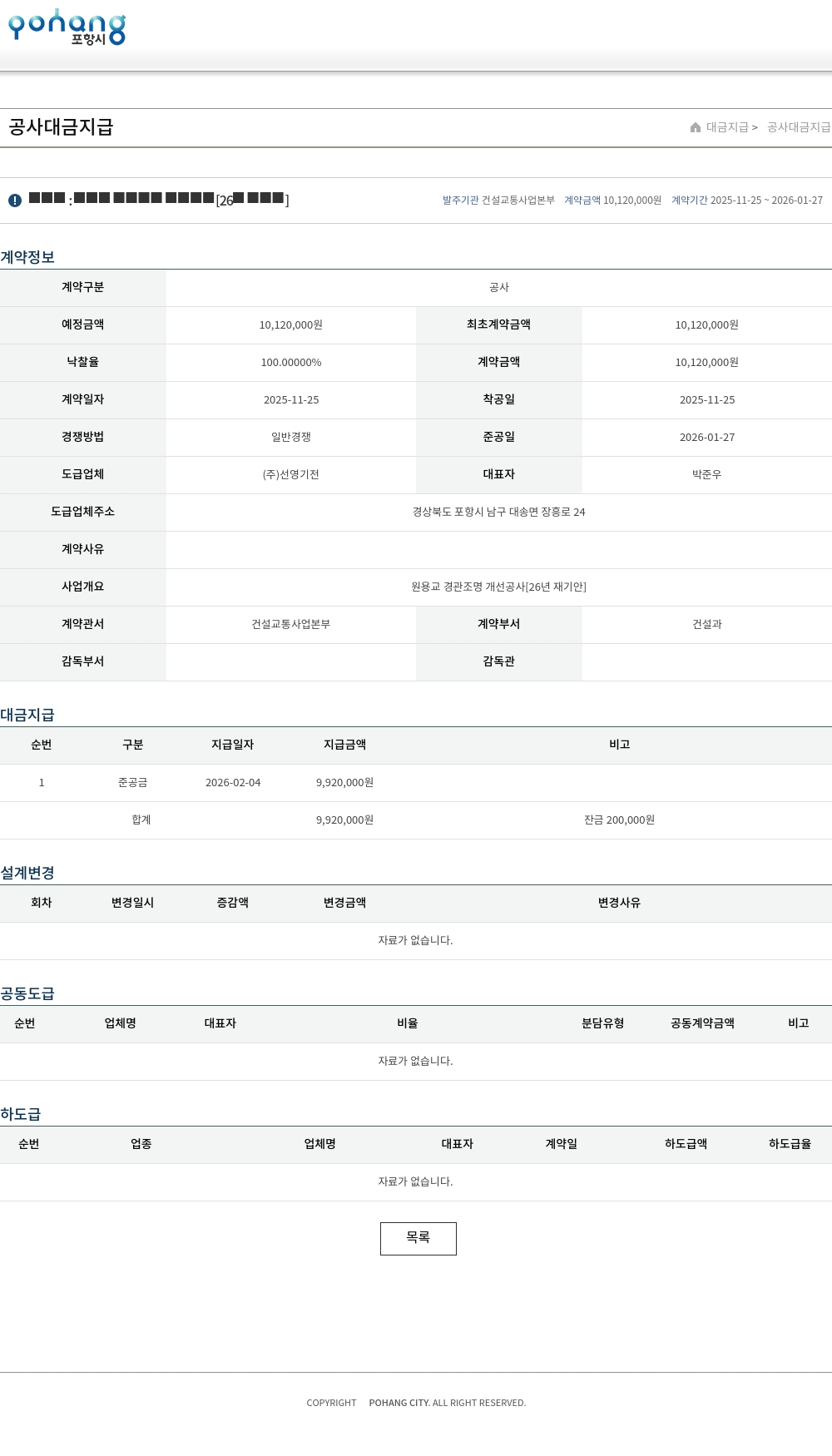 | 1 | 준공금 | 2026-02-04 | 9,920,000원 | |