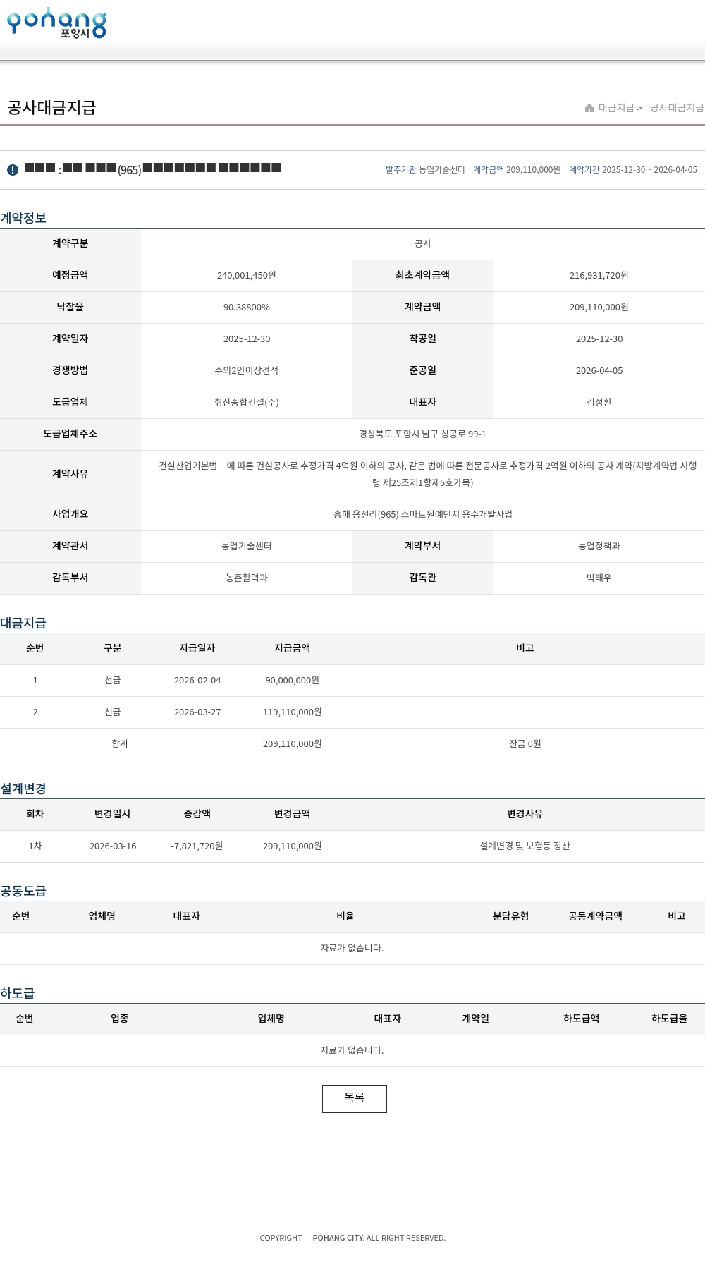 계약명 : 흥해 용전리(965) 스마트원예단지 용수개발사업