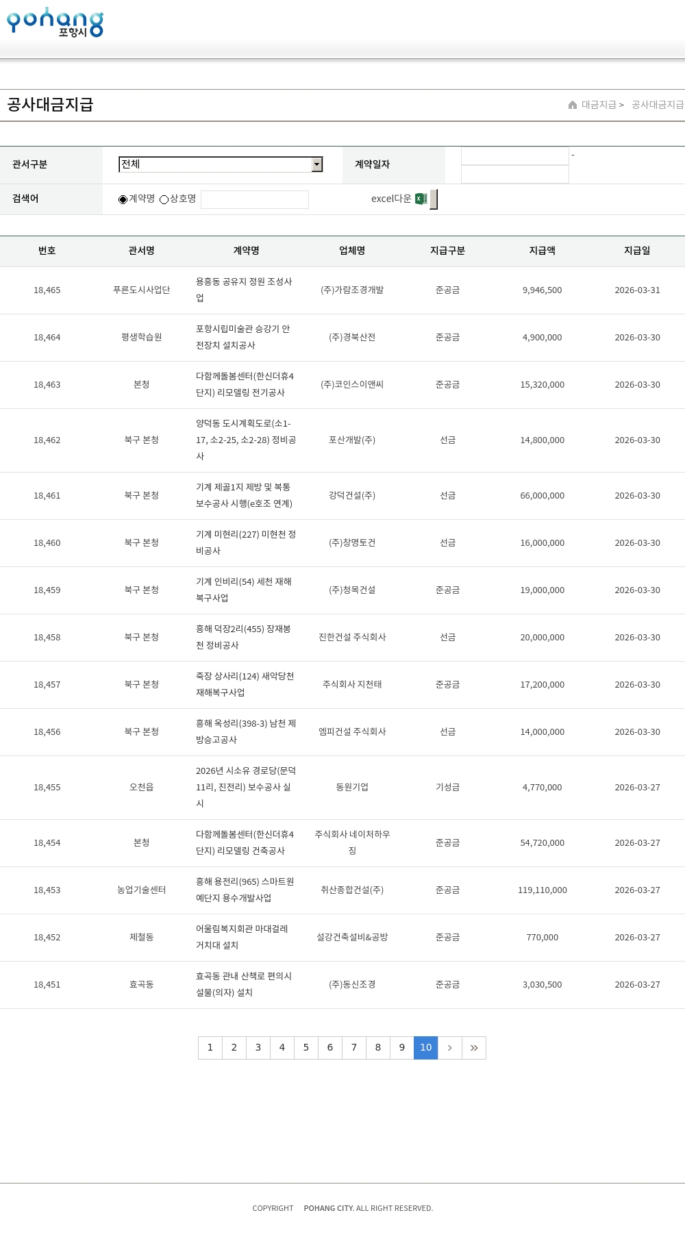 | 18,236 | 푸른도시사업단 | 영일대 LED장미원 조성사업 | (주)한울전기 | 준공금 | 10,083,200 | 2025-12-31 |